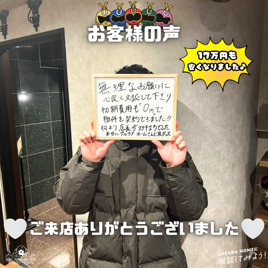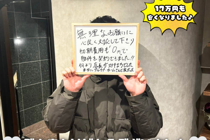 初期費用も「0円」で物件を契約できました!!