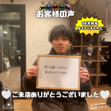 初期費用を抑えられてとっても助かりました。 ありがとうございました。