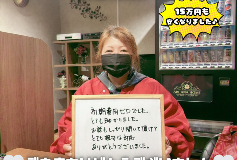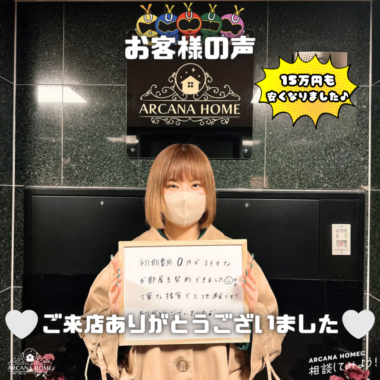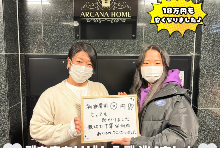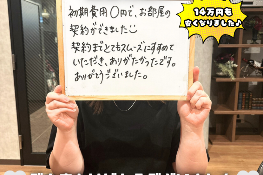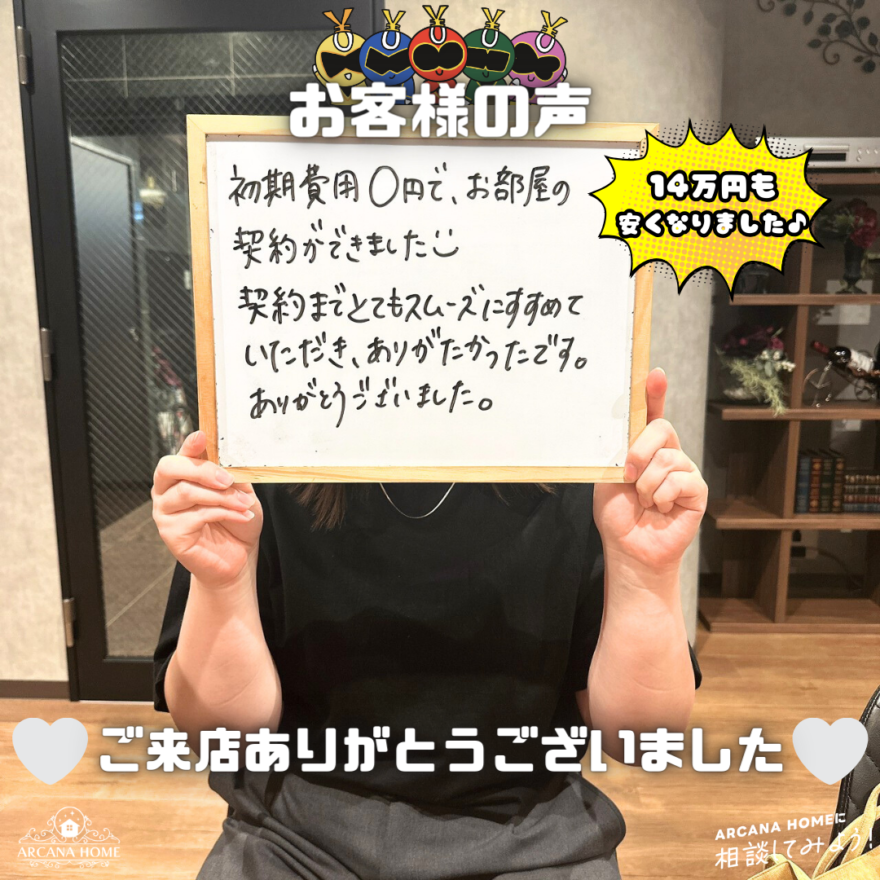 初期費用0円でお部屋の契約ができました😊 契約までとてもスムーズにすすめていただき、ありがたかったです。 ありがとうございました。