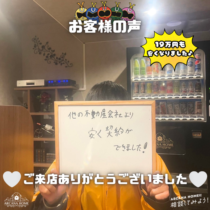 他の不動産会社より安く契約ができました!